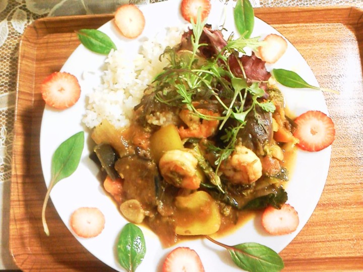 たっぷり野菜とエビトマトカレーが