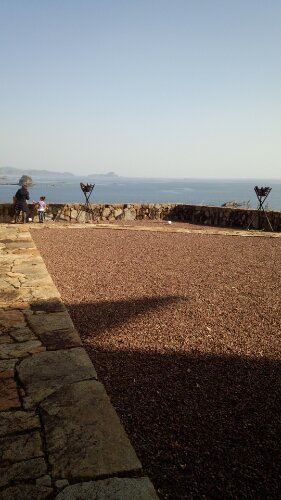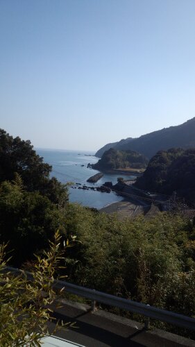 窓ガラス越しに海が見える。