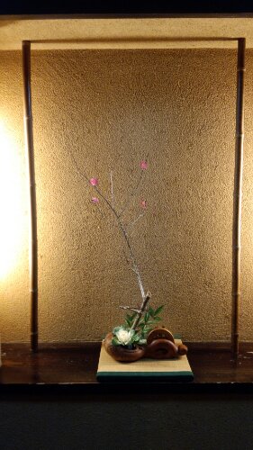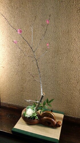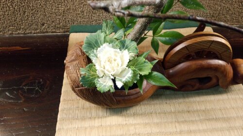 この花器は昔ながらのものであり、 大工さんが家を建てるときに使っていた道具であると聞いた。