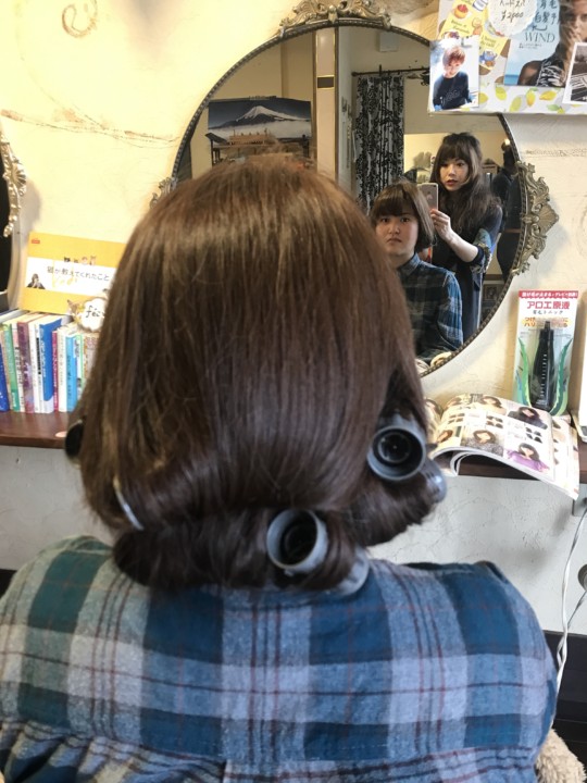 毛先を大きめのホットカーラ一で