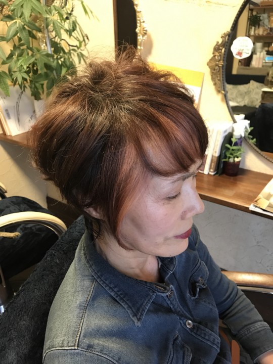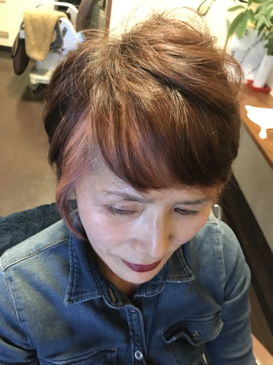 12ト一ンのカラ一(ピンク)で染めましたよ。。