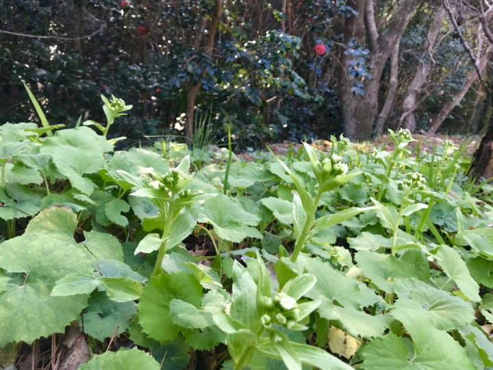 ふきのとう や 椿の花に