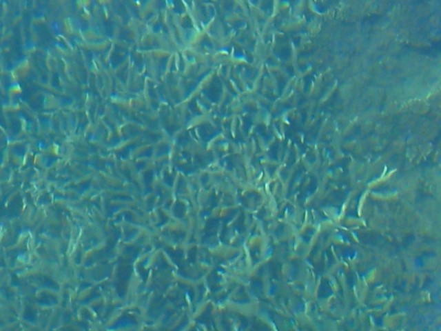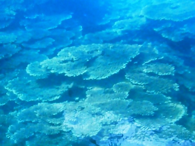 浅いところに群生する珊瑚は