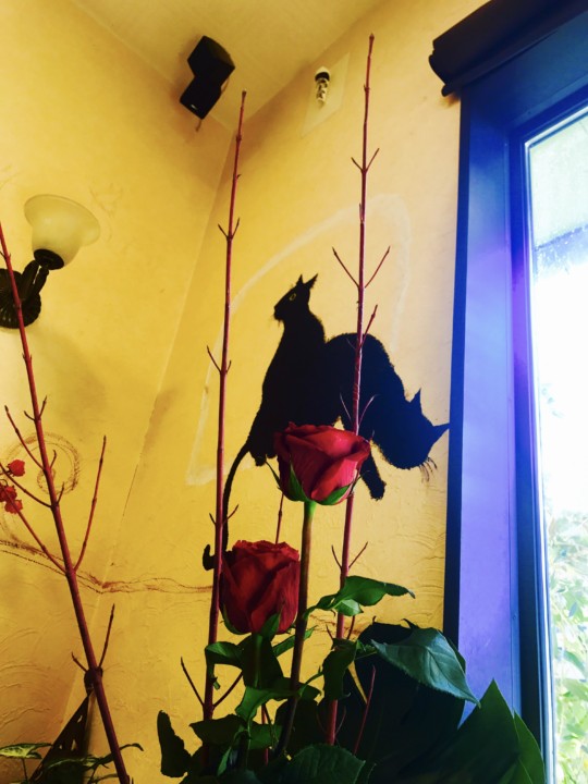 庭に植えてあるバジルを挟んで