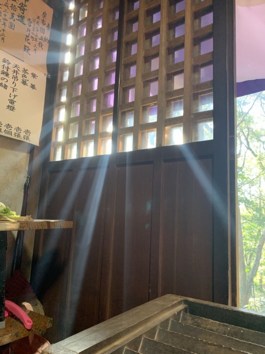 お堂の中から、表の景色を眺めて