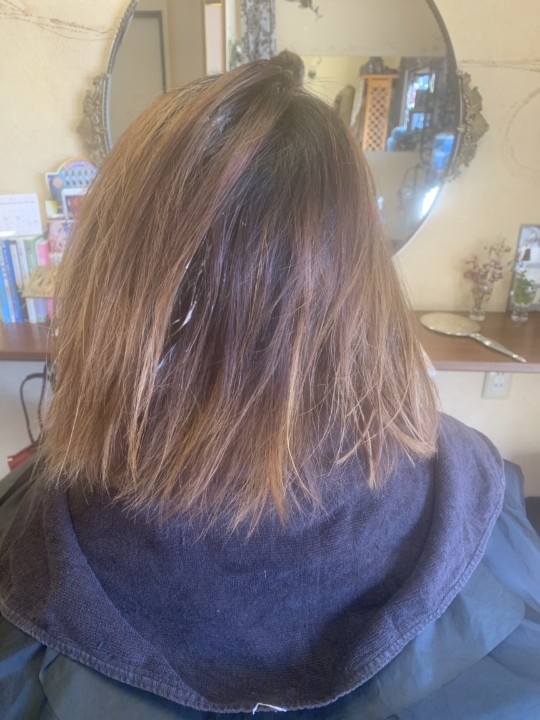 でもベースカラ一も同じくらいに退色していたのでほぼ同じ。傷んだ髪のように見えました。