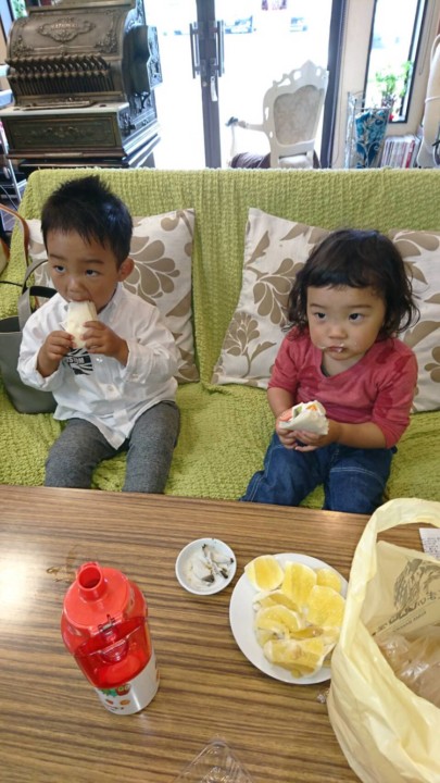 フル一ツサンドを一緒にモグモグしてます。