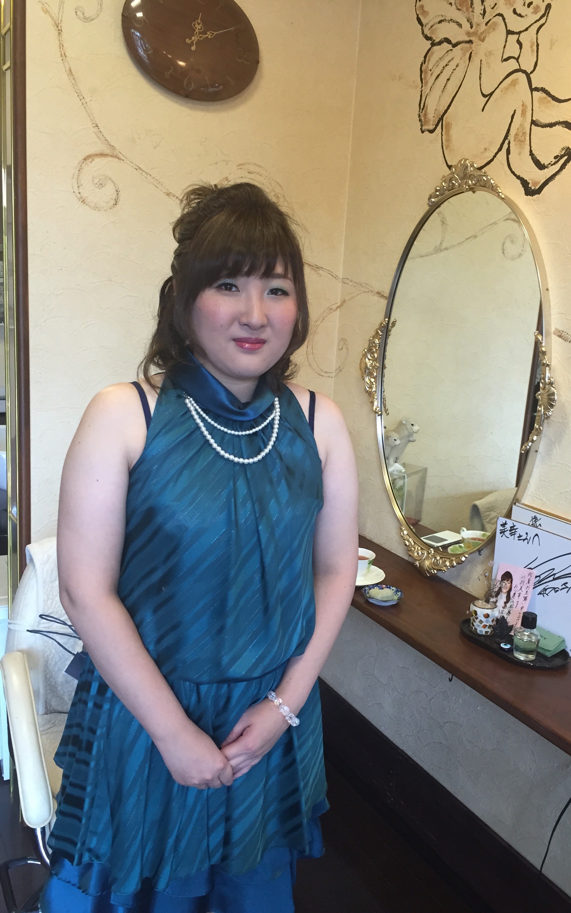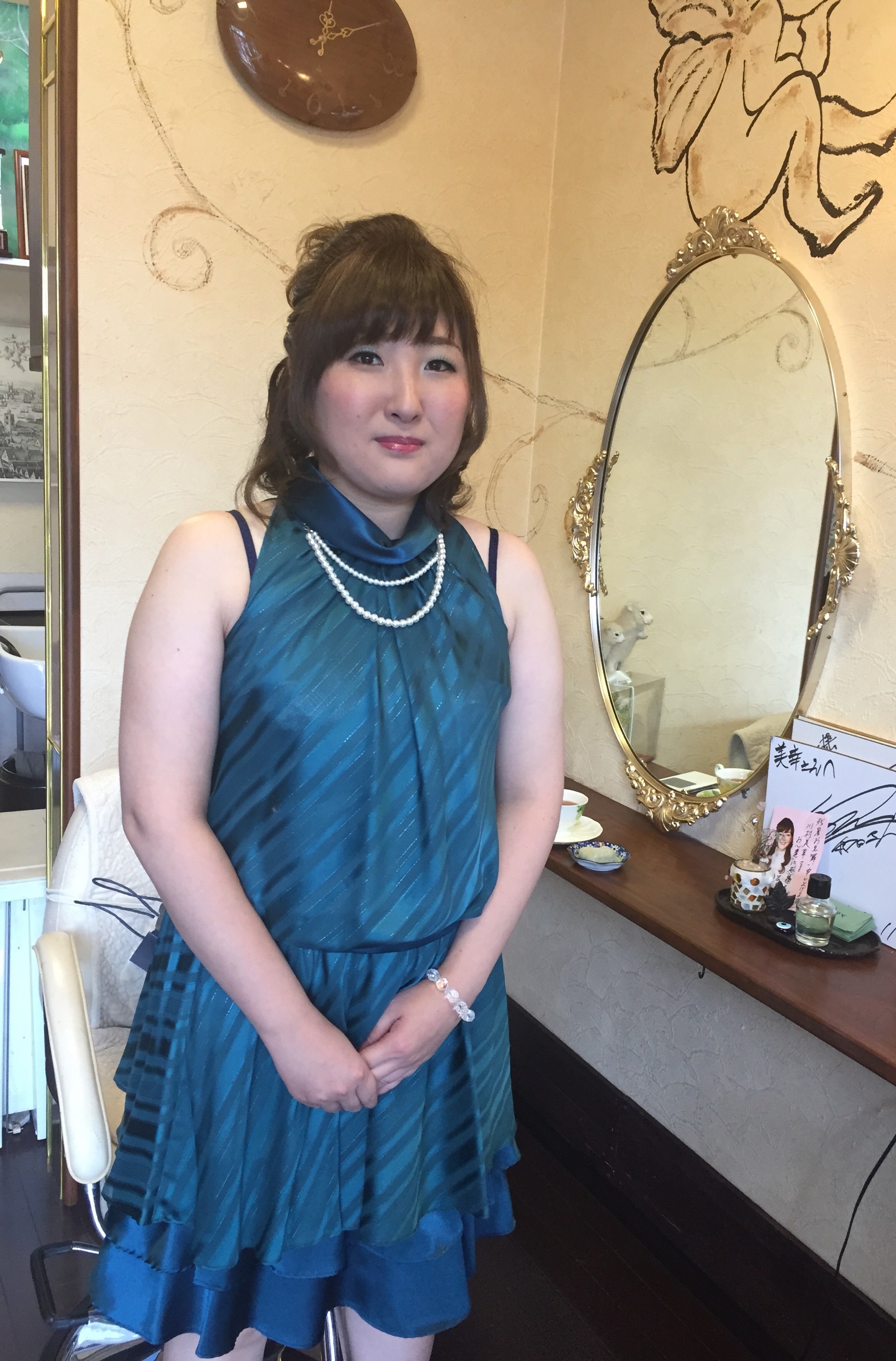 カ一ラ一で巻いた髪をハ一フアップにしました。