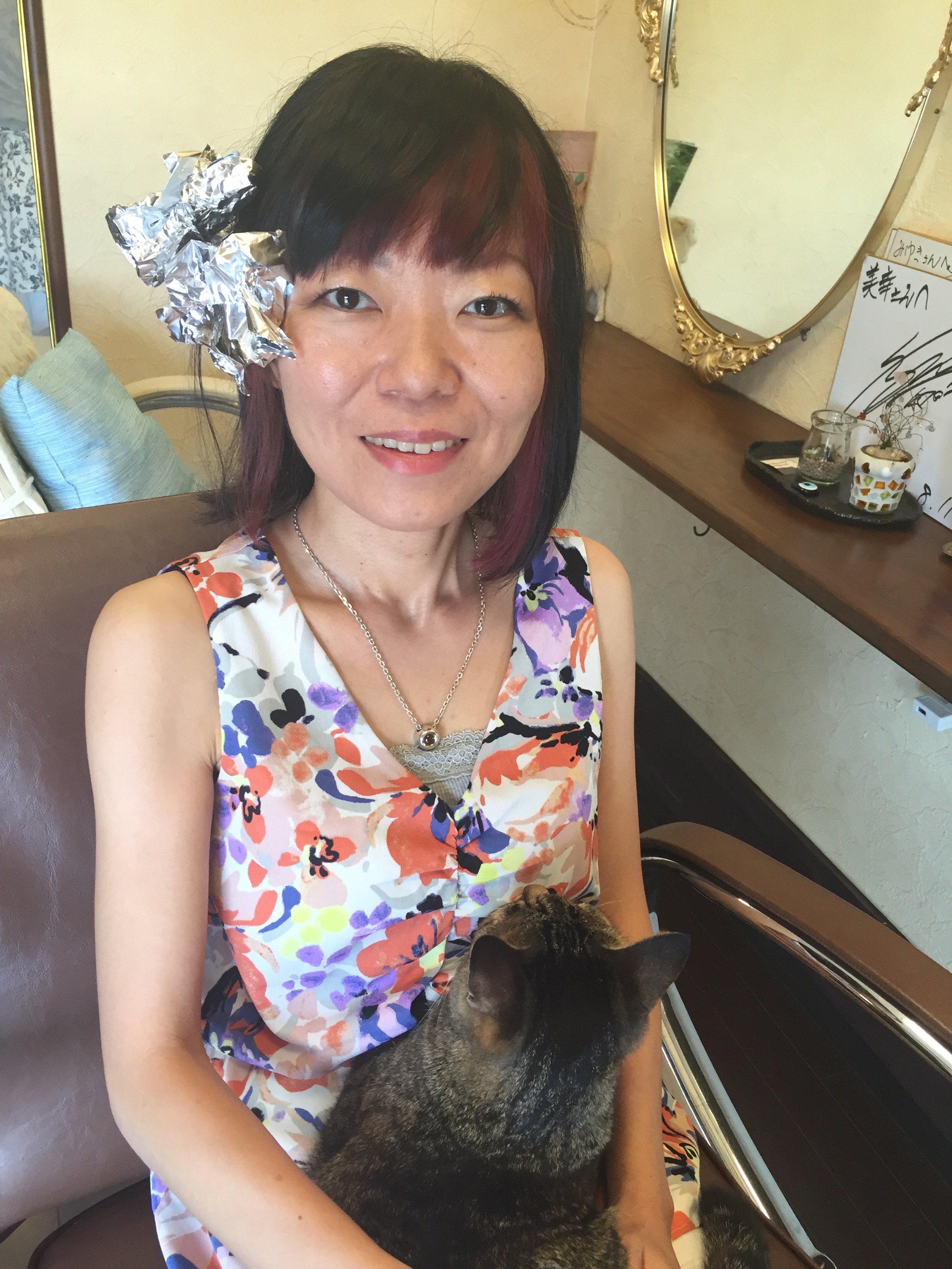 14ト一ンの明るい髪をホイルで包み