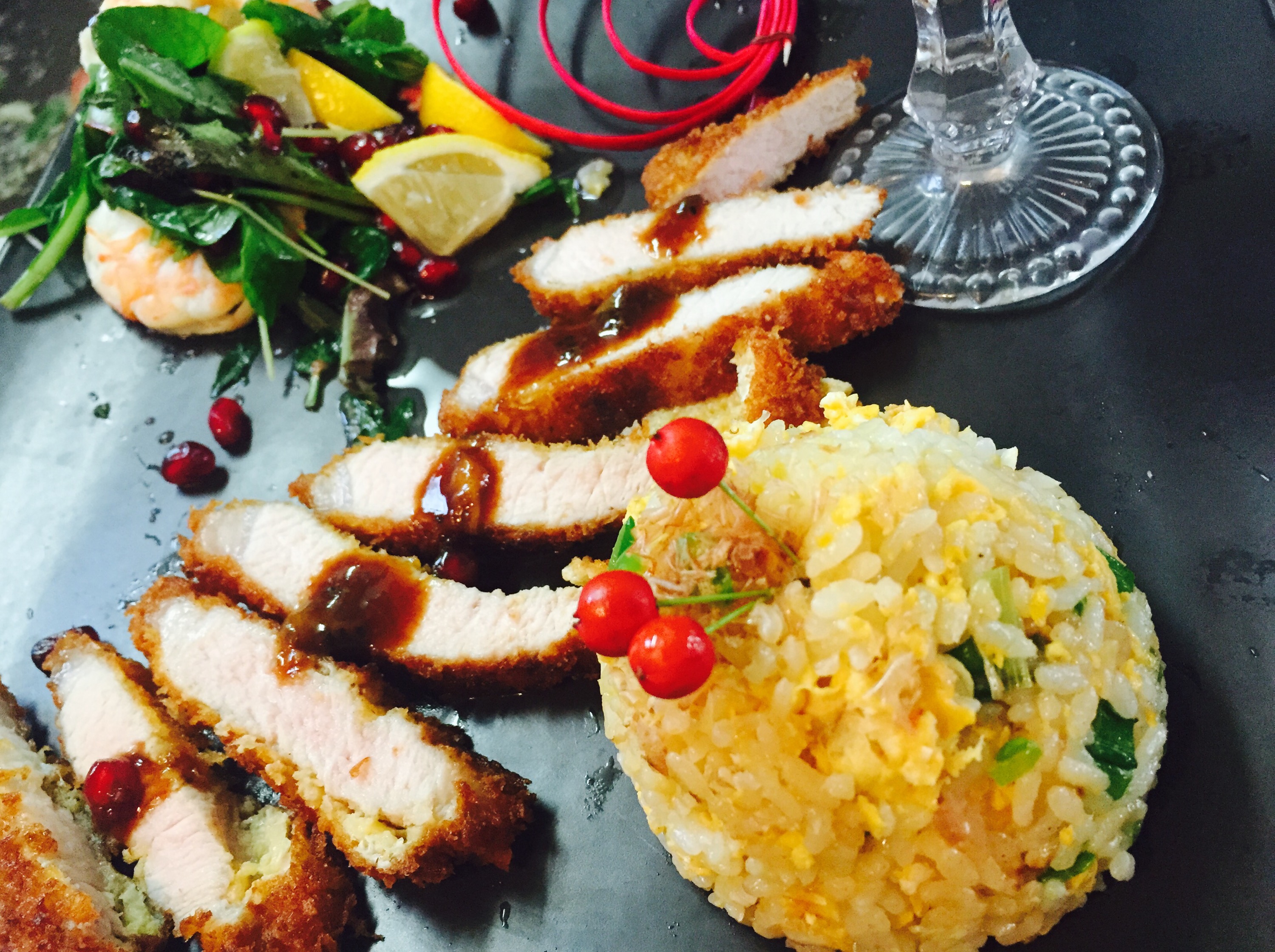 赤ワインで煮詰めたソ一スとお肉…