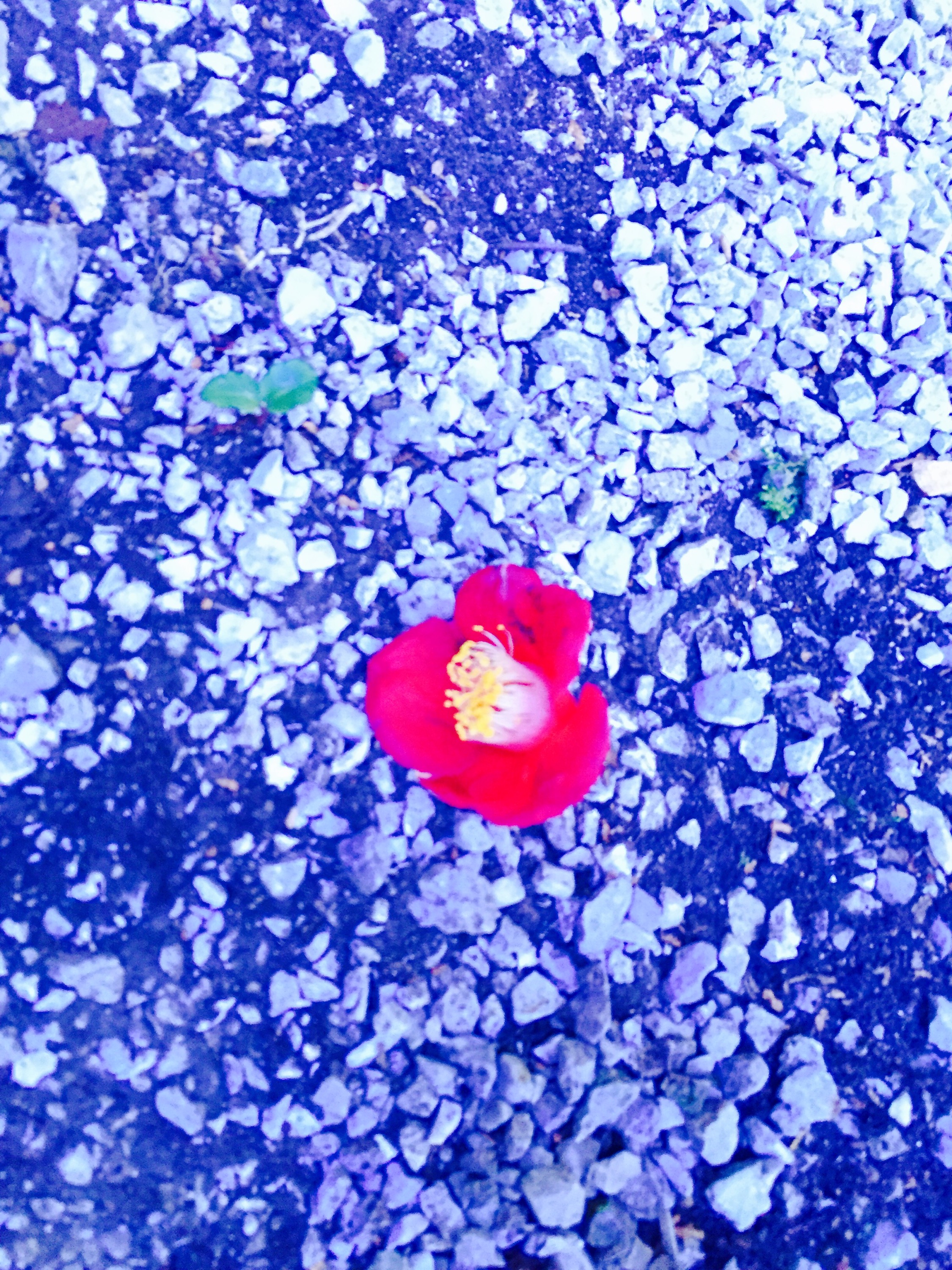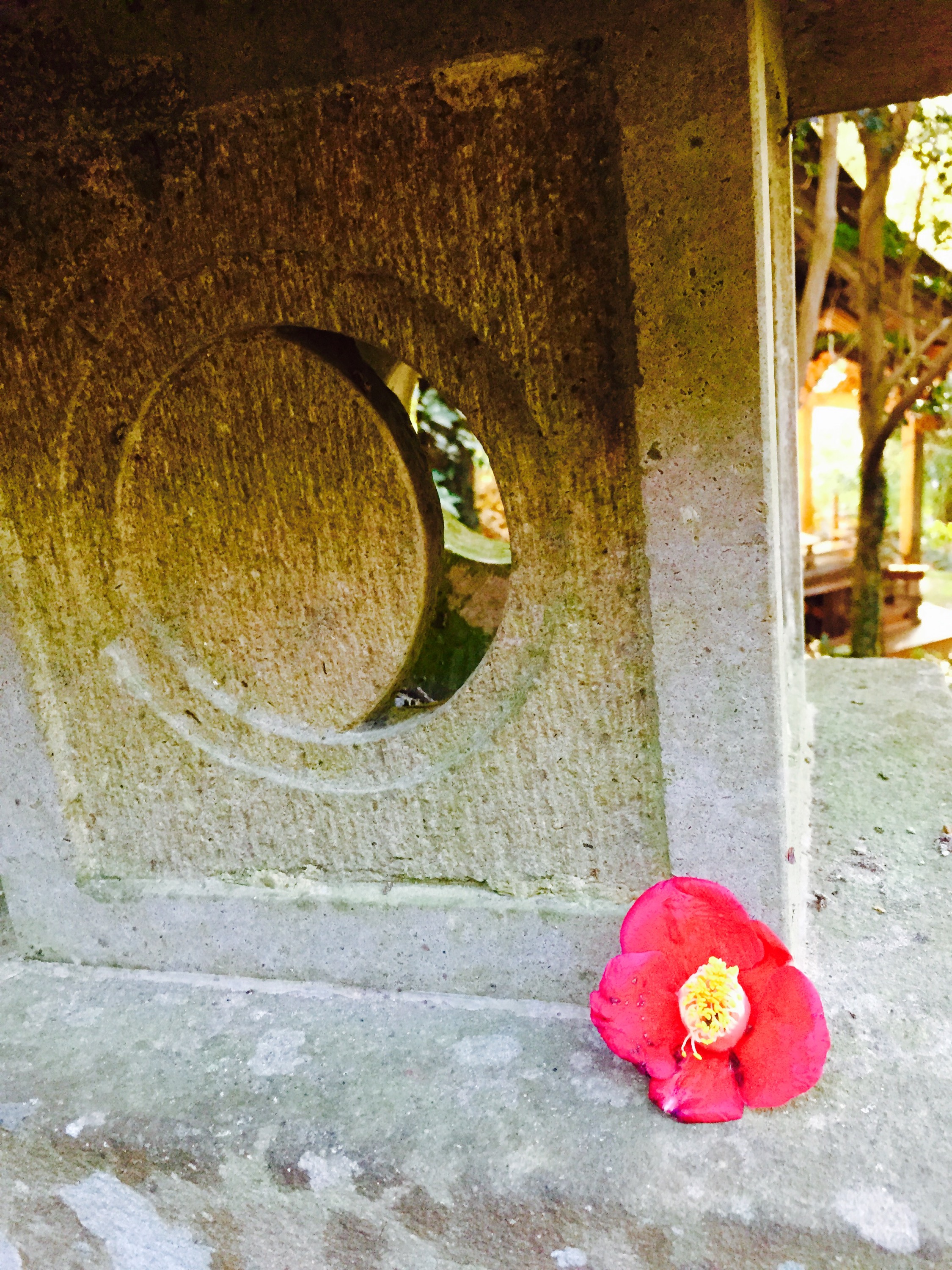 足もとに堕ちた紅い椿の花を見つけて