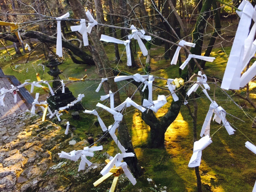 枝のあちこちに『おみくじ』が結ばれている。