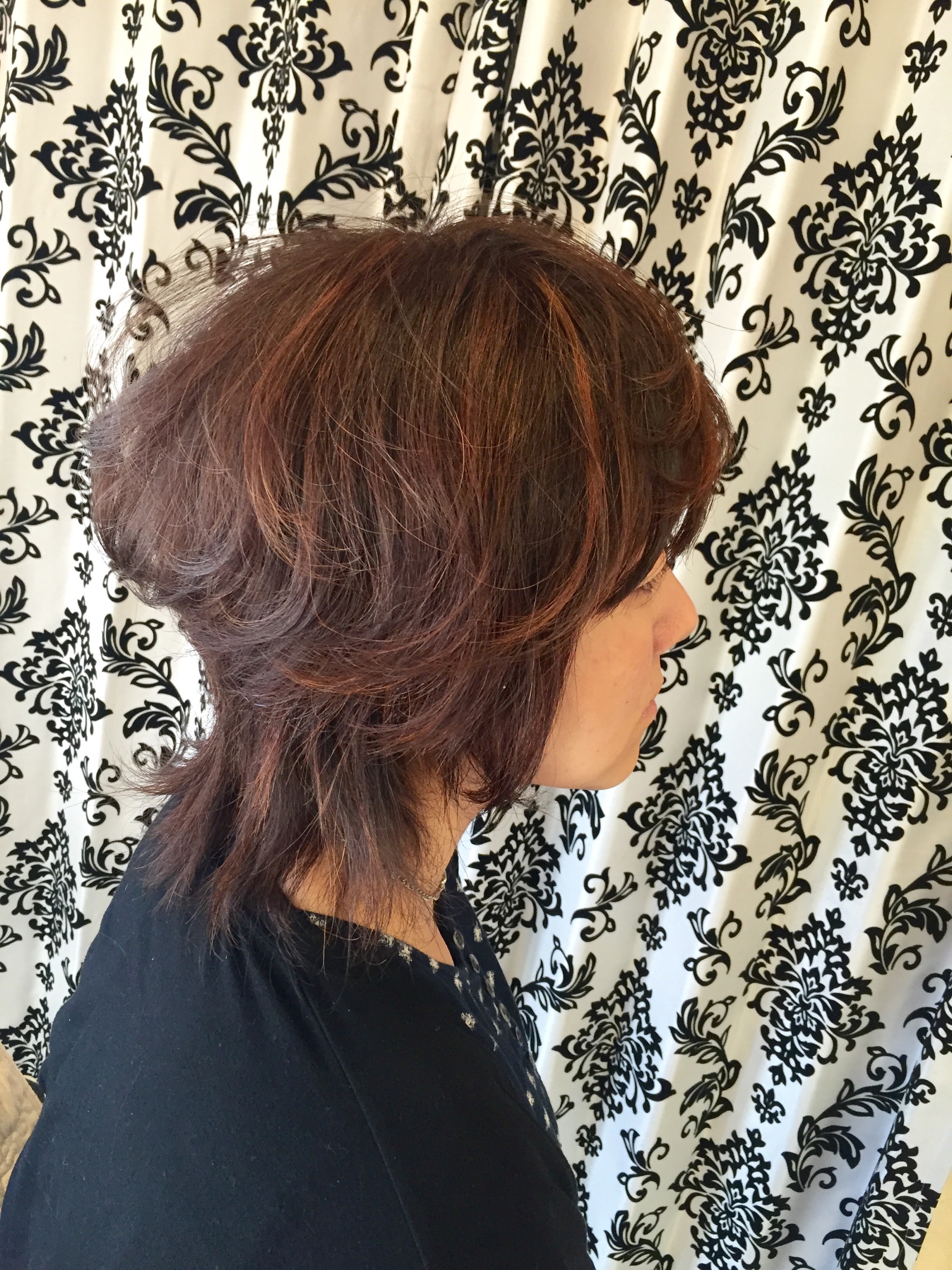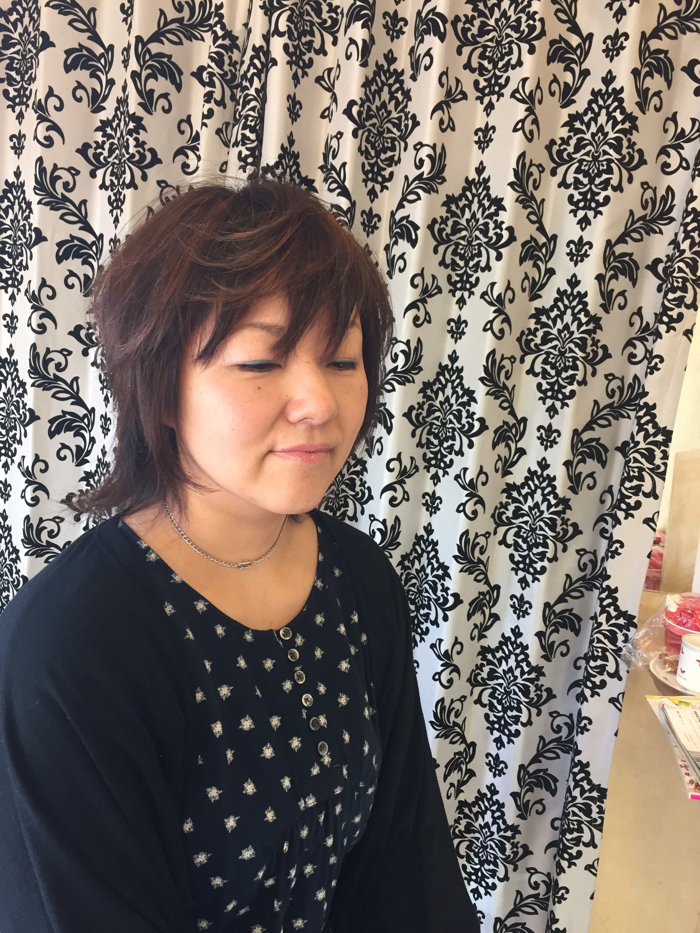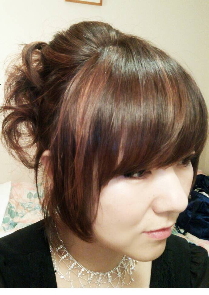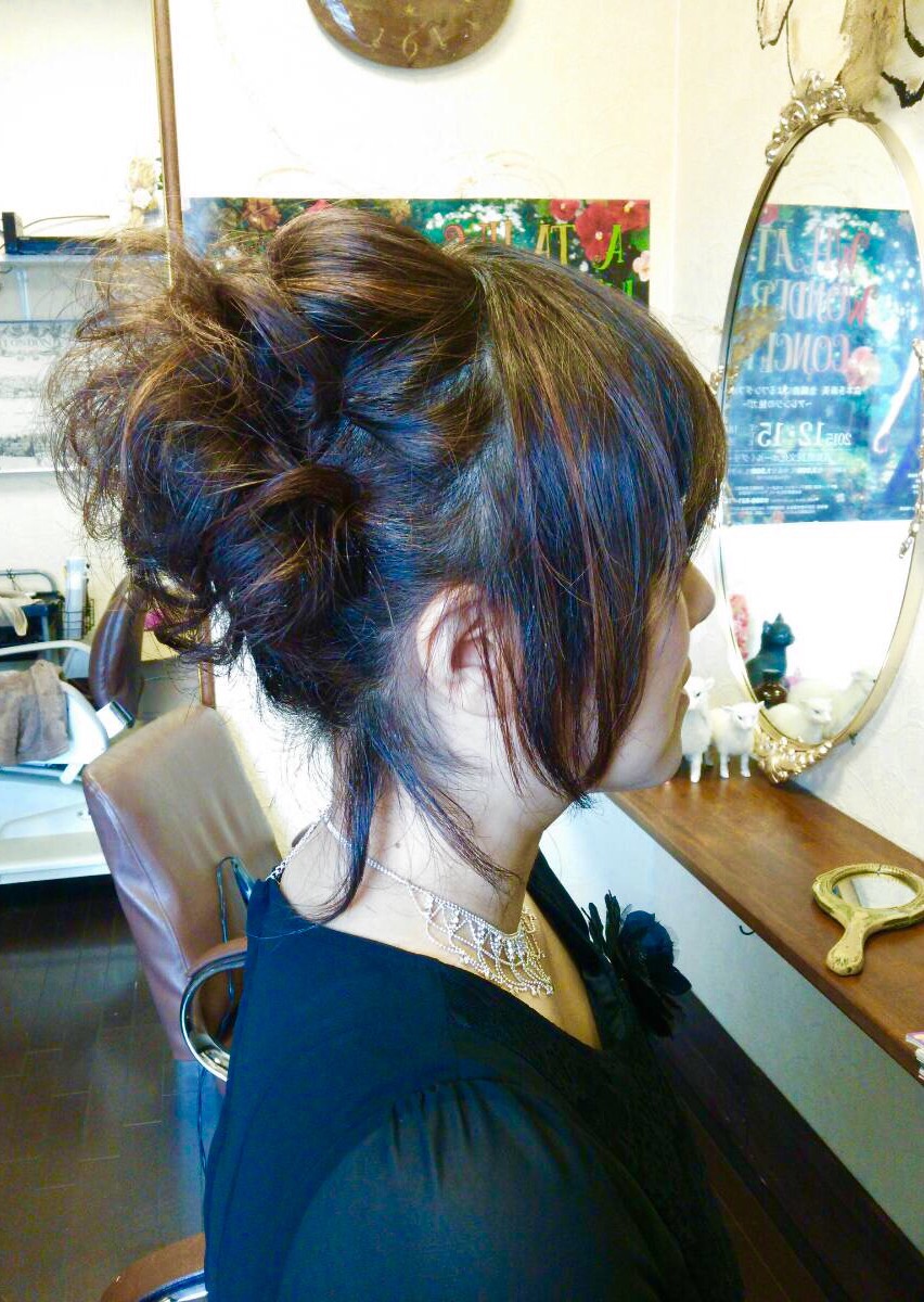 肩までのレイヤーボブの髪をアップにしてみました。