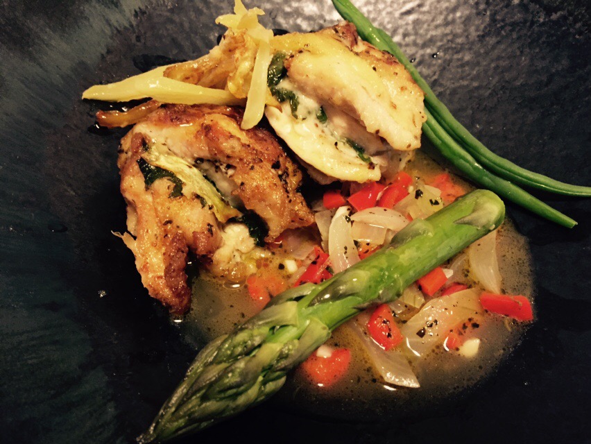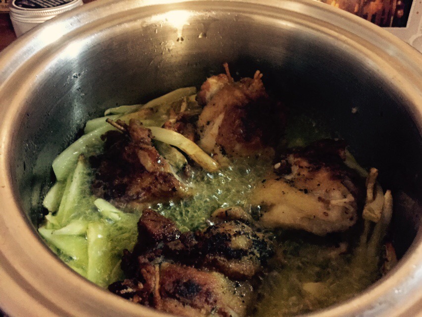 岩塩とオリ一ブオイルで炒めて