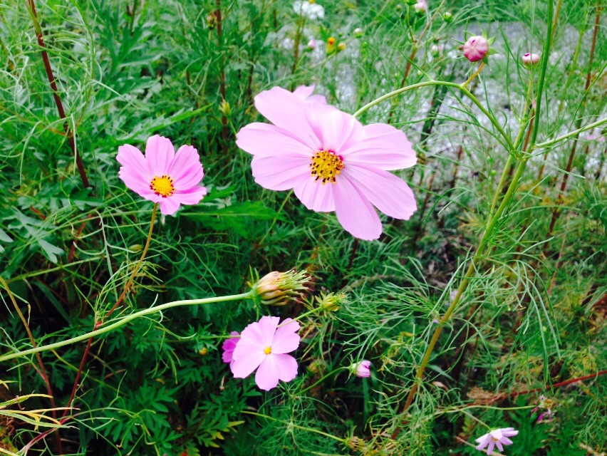 秋の空にコスモスが風に舞い踊る。