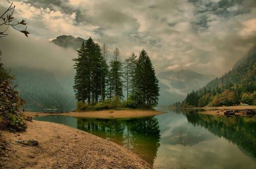 湖と山々の木々とが