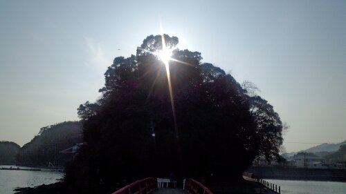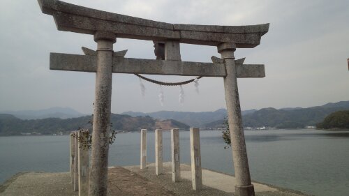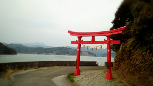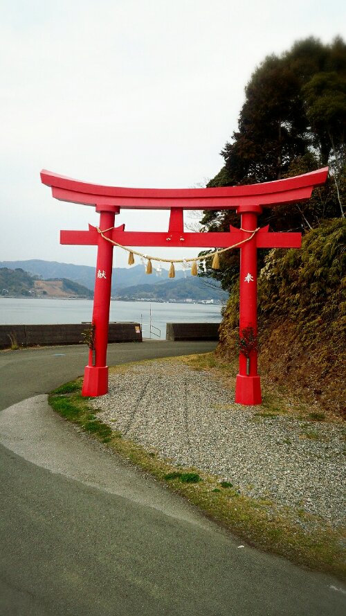 鳥居が外向き(海向き)に建っているのが特徴。