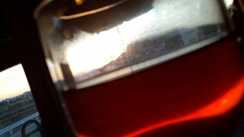 夕焼け空が紅茶の色と重なる