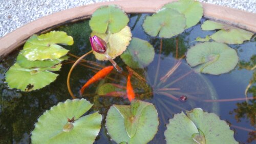 朱色の魚が泳いでる。