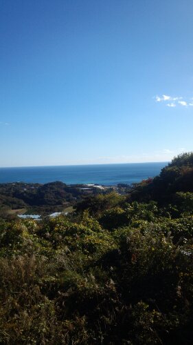 晴れた海の見える小高い丘の上