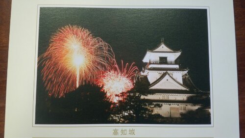高知城と花火