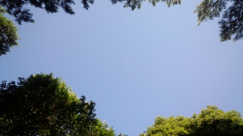 夏の時季に洞窟の上から