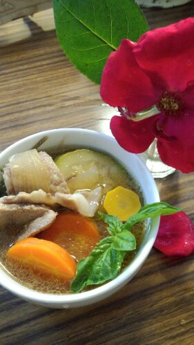 バジルを添えると良い香りがします。
