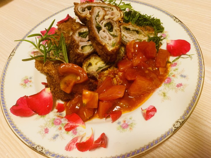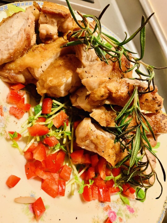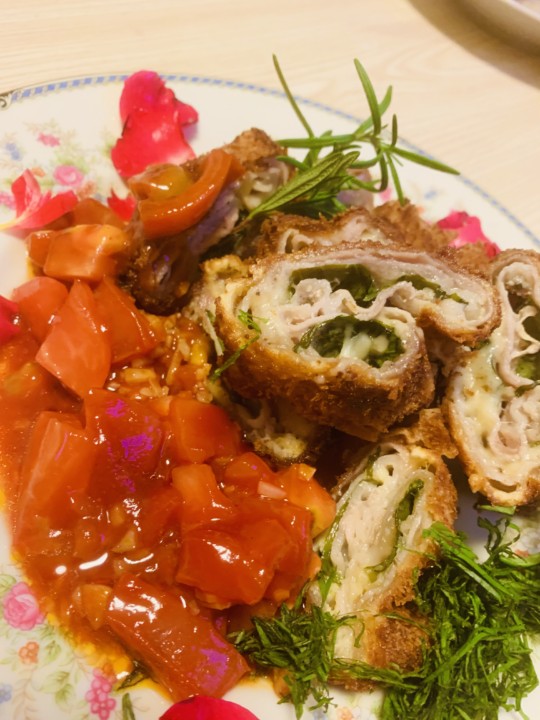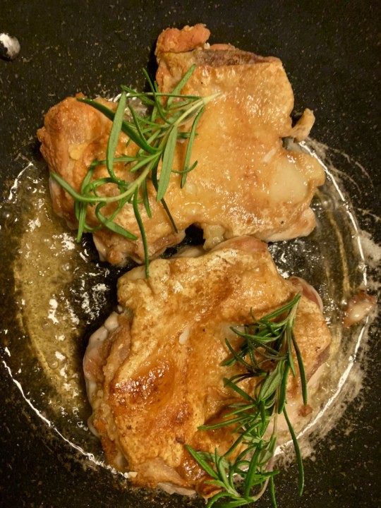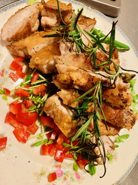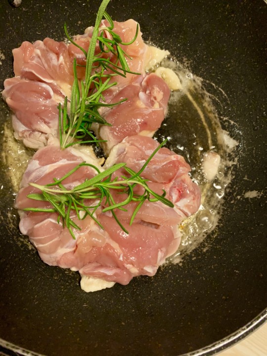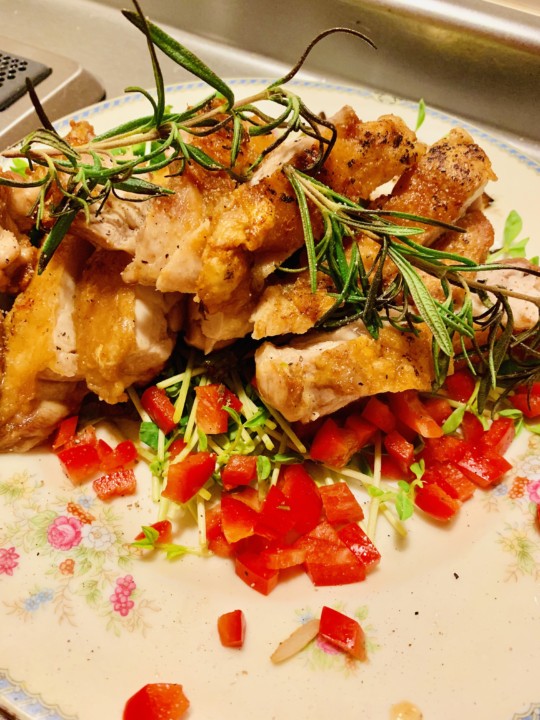 飾り、ロ一ズマリーと塩胡椒で仕上げる。