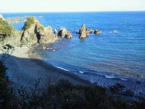 海を眺めて、漁船やヨットを見送って近くの『五色の浜』に降りて散歩してみました。