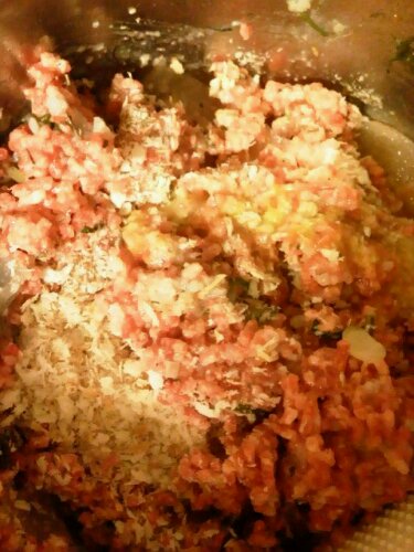 塩・挽き肉・パン粉・卵をしっかり混ぜ合わせます。