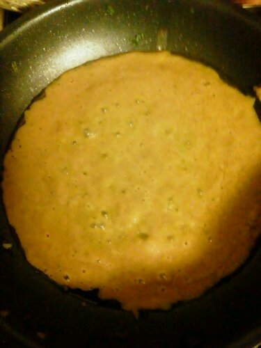 ニンジン・小松菜・ほうれん草・マンゴー・ヨーグルトの野菜ジュースをフライパンで温め、そこへ