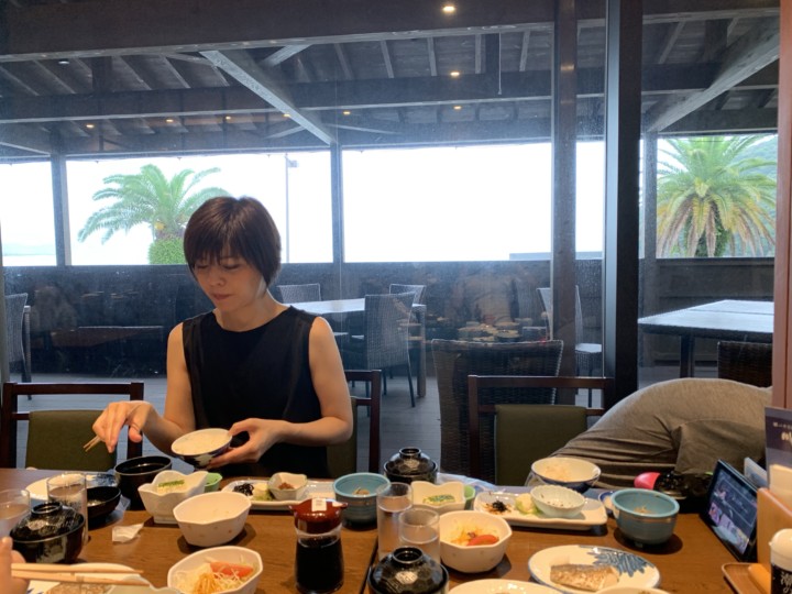 レストランで朝食を食べて
