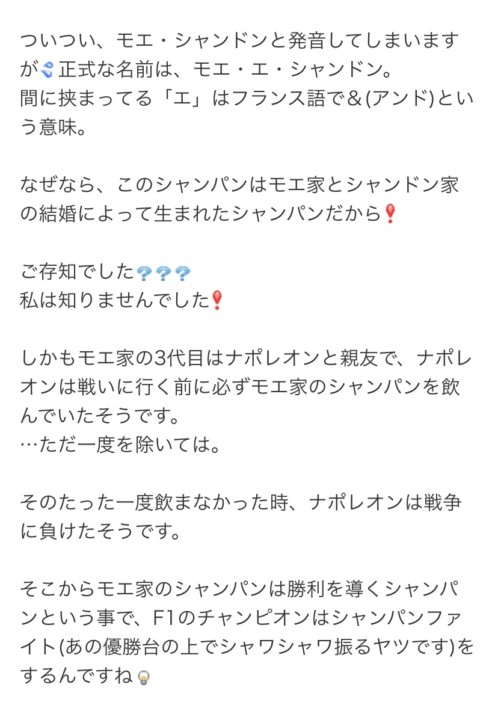 「ヴ一ヴクリコの意味は『未亡人』というらしいんです。笑」 と愛ちゃん。