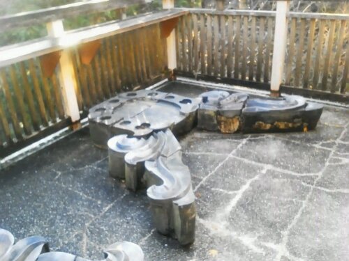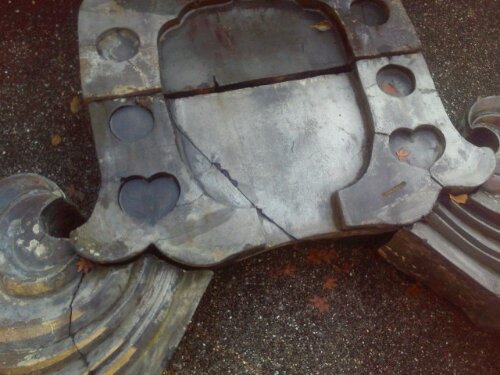 お茶をいただける休憩所があるのですが、眺めの良いバルコニー?へ出てみると、そこには昔、竹林寺さんの屋根に飾ってあった『お彫り』がございます。