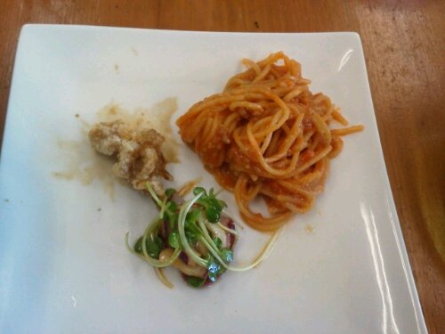 こちらのナポリタンは魔法のお鍋に パスタも野菜も挽き肉にソース