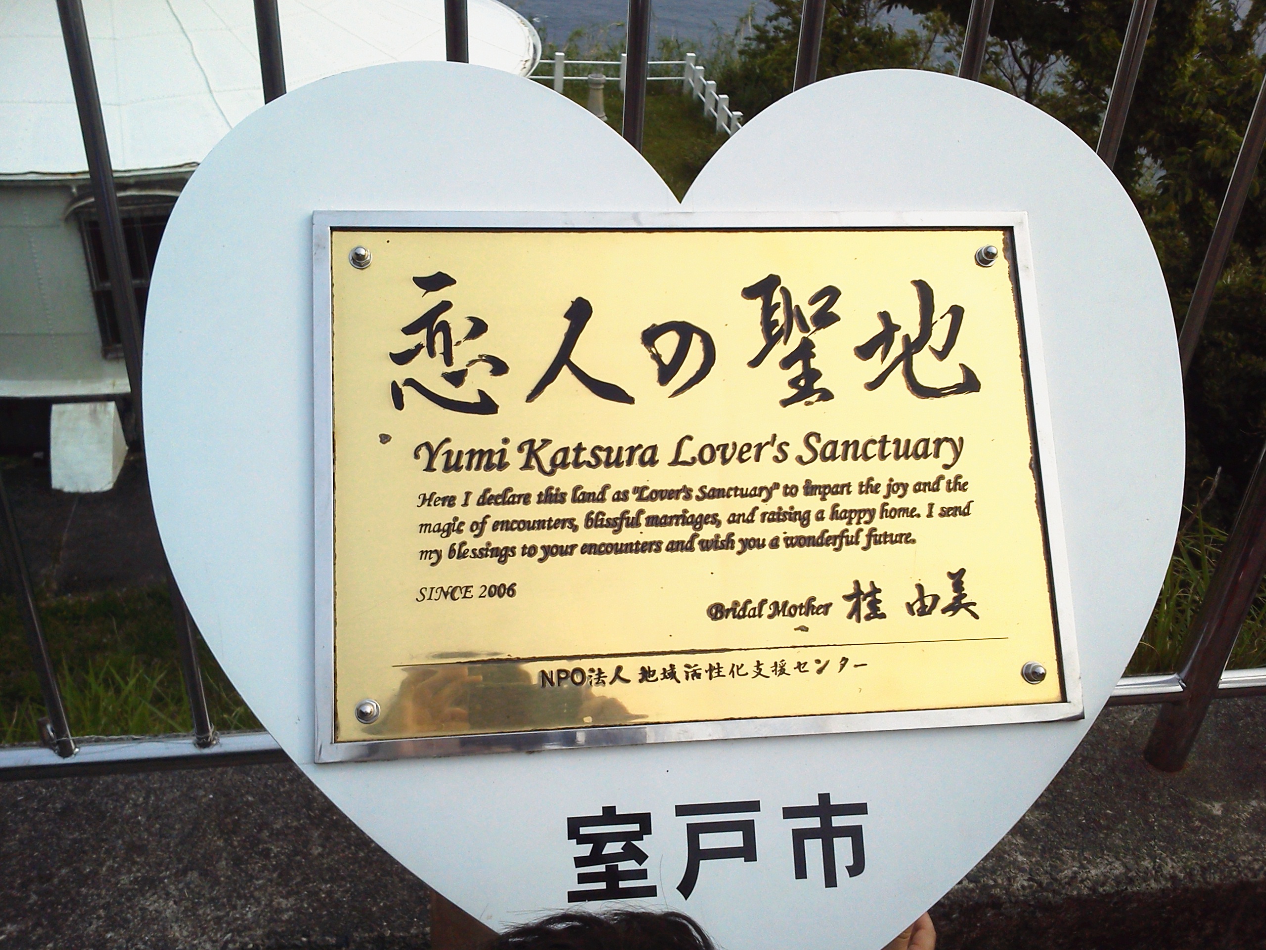 『恋人の聖地』と書いたプレートが飾られています♪