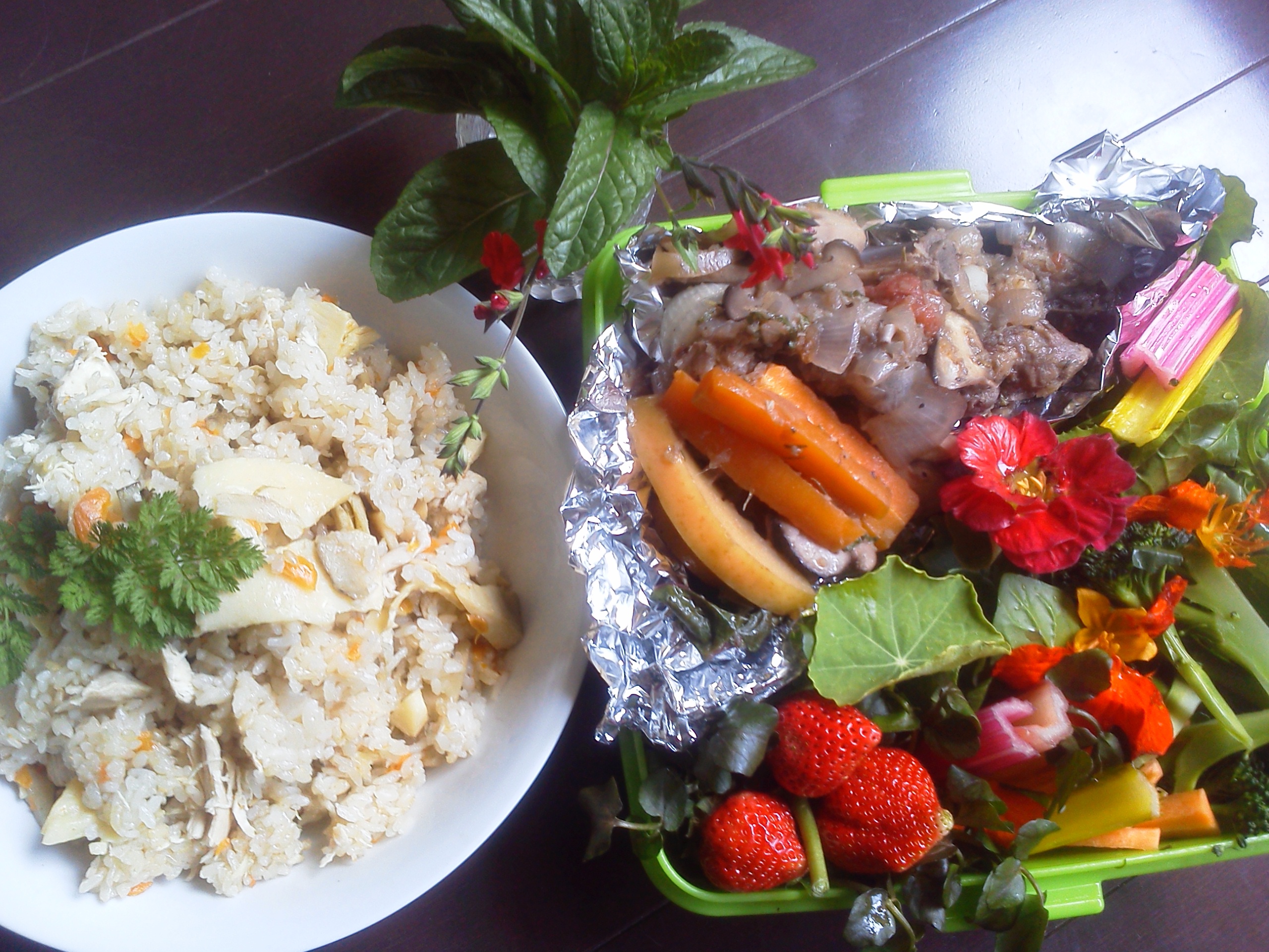 レインボーサラダとスペアリブの赤ワイン煮込みも作って、お花見弁当