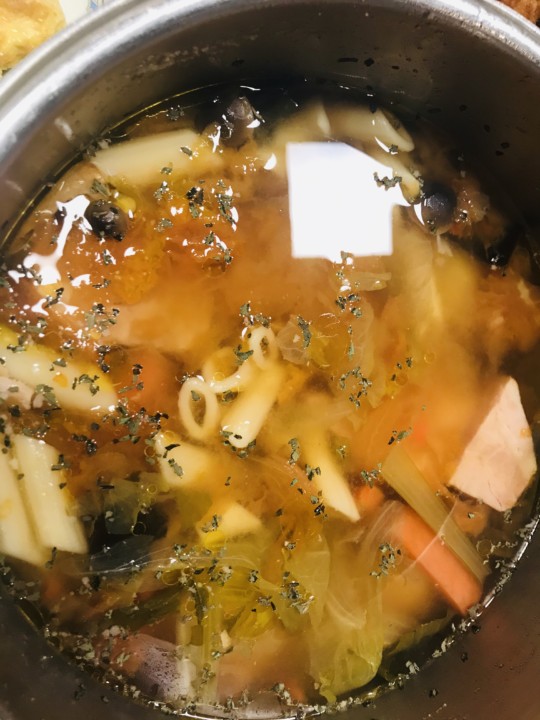 マカロニと厚切りベーコンのポトフ
