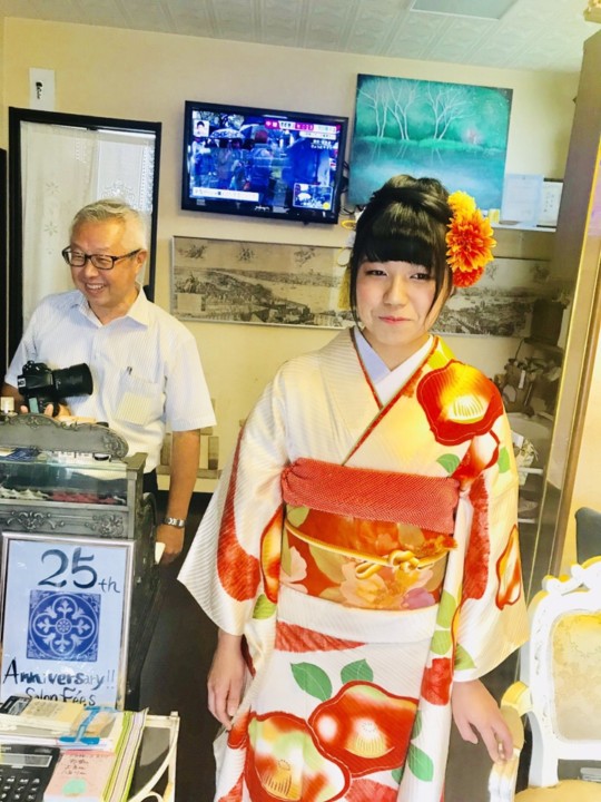 想い出の着物で記念写真。