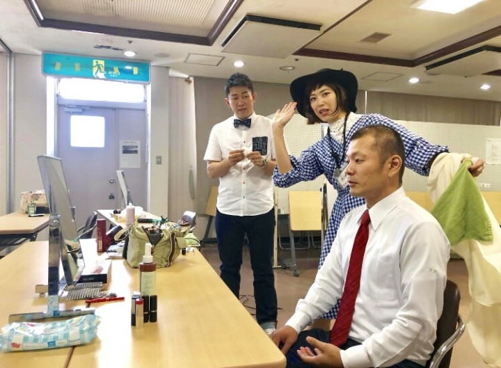 メイクルームでショ一トコントしながら