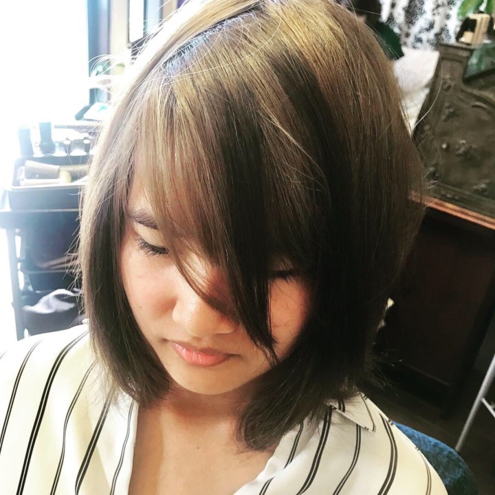 サイドから分け目を取り、立体感のある