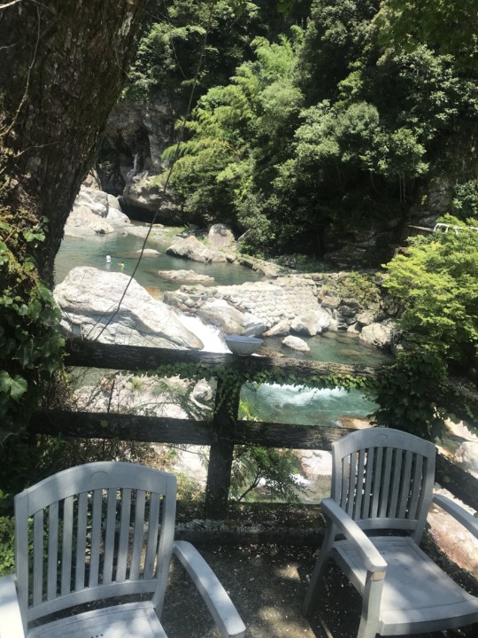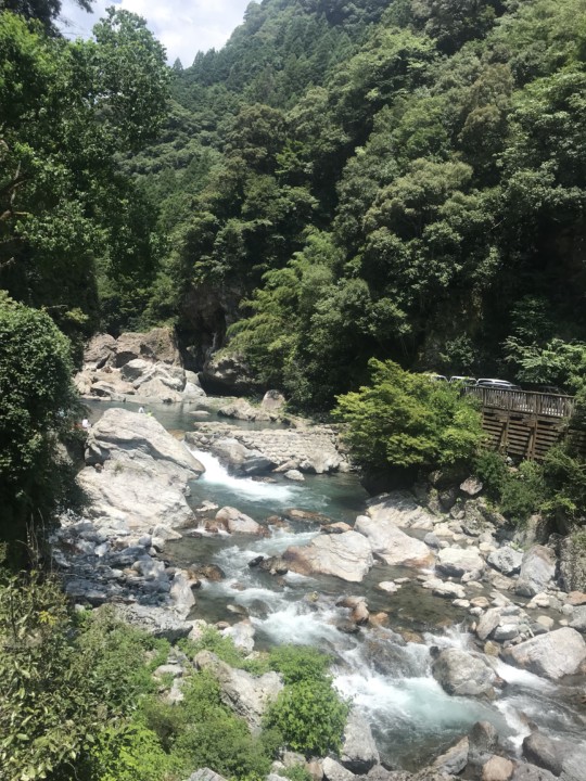 中津渓谷の美しい透明の水に